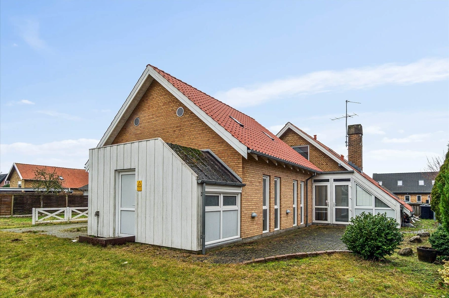 Ejendommen er opført 1956 og senest ombygget i 2007. Bygningens 225 m² fordeler sig på 173 m² erhverv i stueplan samt 51 m² bolig på 1. sal. Boliglejemålet på 1. sal kunne med fordel konverteres til erhverv og lejes ud til en erhvervsdrivende indenfor de liberale erhverv og på den måde skabe en bedre synergi i ejendommen – dette er dog ikke undersøgt hos Aarhus Kommune om der kan gives dispensation hertil.