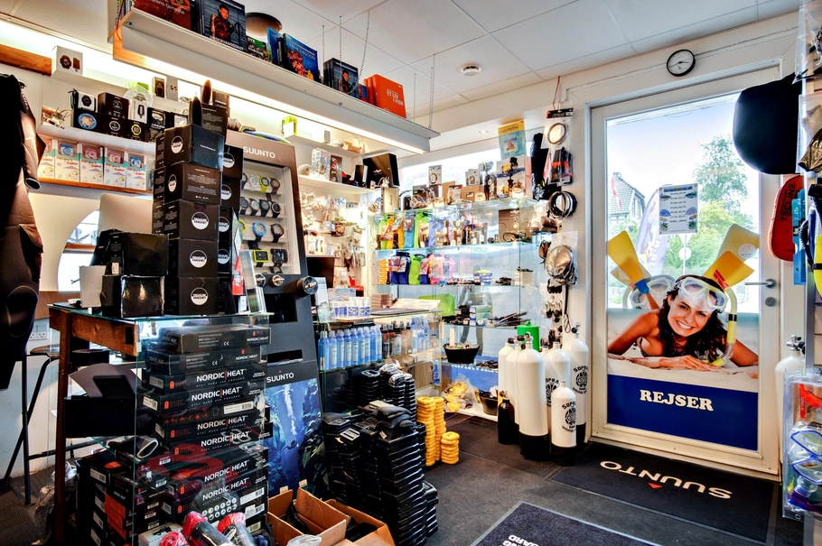 Fra butikslokalet er der adgang ned til en hyggelig underetage med en lys fordelingsgang. I underetagen findes bl.a. køkken, mødelokale og toilet - alle rum i rigtig flot stand. Fra køkkenet er der adgang til en hyggelig gårdhave. Der er tilknyttet parkeringspladser til ejendommen til fælles brug for ejerforeningens medlemmer. Ejerforeningen, der består af 4 ejerlejligheder, har bl.a. investeret og etableret et nyt 2-kreds kloak- og regnvandssystem og endvidere nedgravet dræn langs ydersiden af væggene.
