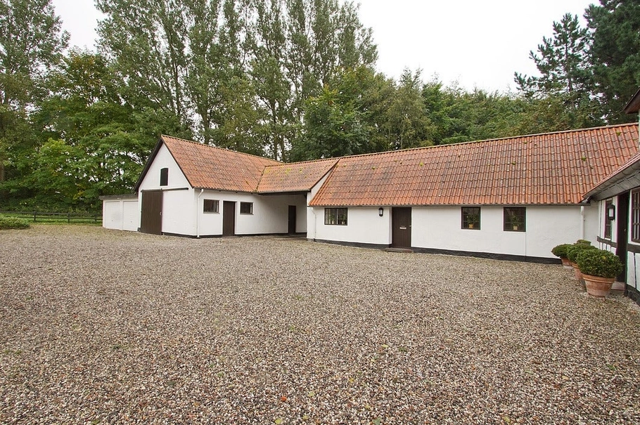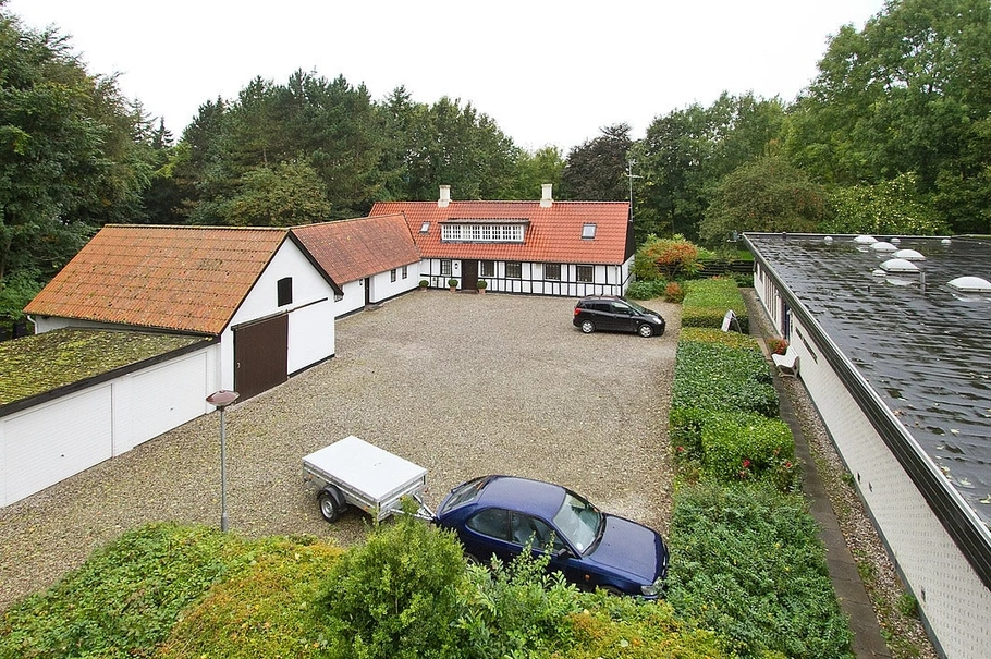 Boligdelen fremstår velholdt med delvis bindingsværk, der emmer af sjæl og charme. I sidefløjen er der indrettet en separat afdeling med tre værelser, badeværelse, et lille tekøkken og egen indgang. Haven er helt ugeneret og omkranset af høje træer.