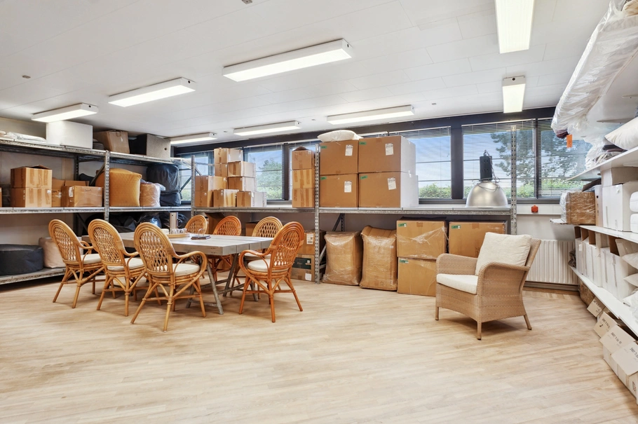 Ejendommen indeholder entre med adgang til forkontor, kantine og toilet. Herfra er der adgang til showroom/lager samt værksted og lager. Der er adgang til lageret via dobbeltdør, som går ud til rangerplads bagtil.