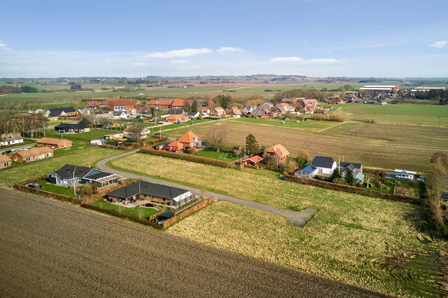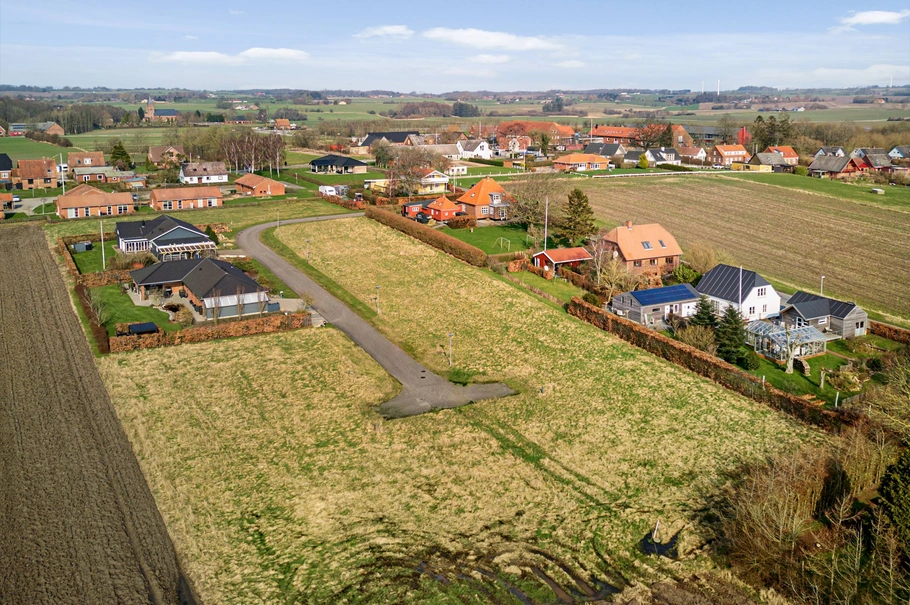 Tæt på skole og børnehave og med udsigt over markerne ned mod Vejle Fjord.