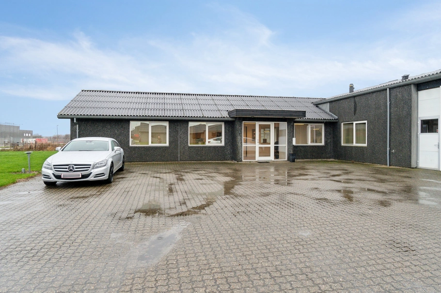 Ejendommen ligger i et veletableret industrikvarter tæt ved motorvej E45.