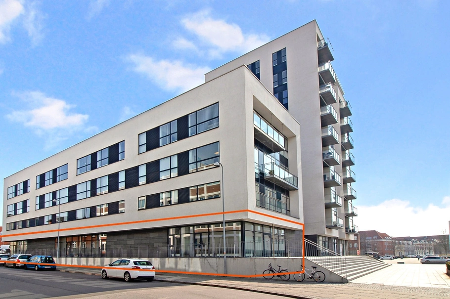 Centralt beliggende erhvervsejerlejlighed på 629 m² incl. fællesarealer på 60 m². Hertil kælder 95 m². Til brug for klinik, liberalt erhverv eller lignende.