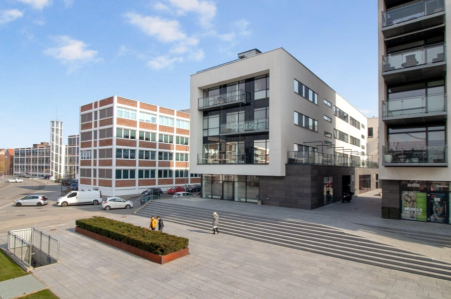 Ejerlejligheden er beliggende i et præsentabelt bygningskompleks meget tæt ved midtbyen, banegården og lige ved Campus Horsens, der rummer ca. 8.000 studiepladser.