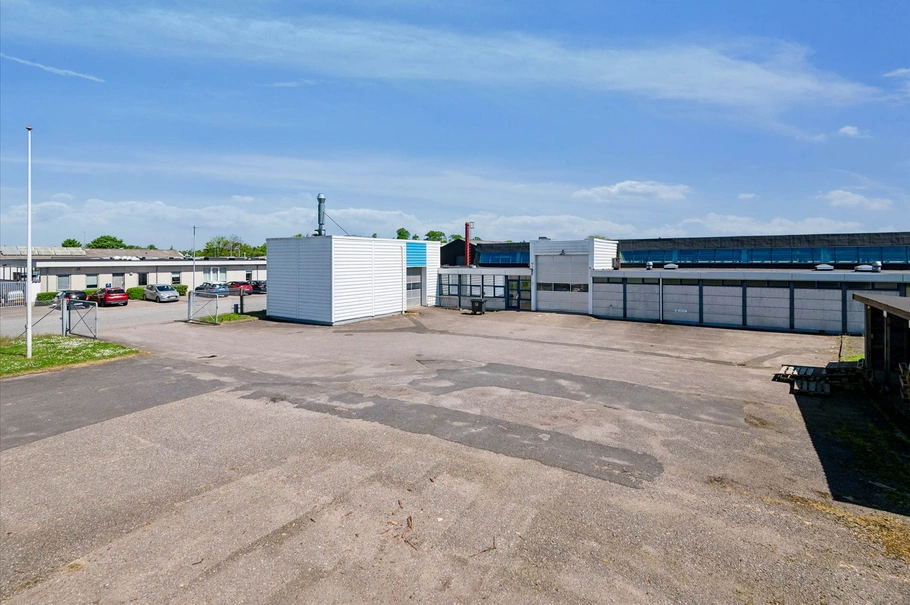 Den anden halvdel af ejendommen byder på et modtagerrum med port adgang, adskillige kontorer, lagerlokaler, velfærdsfaciliteter, toiletter og kantineforhold.