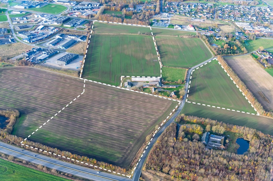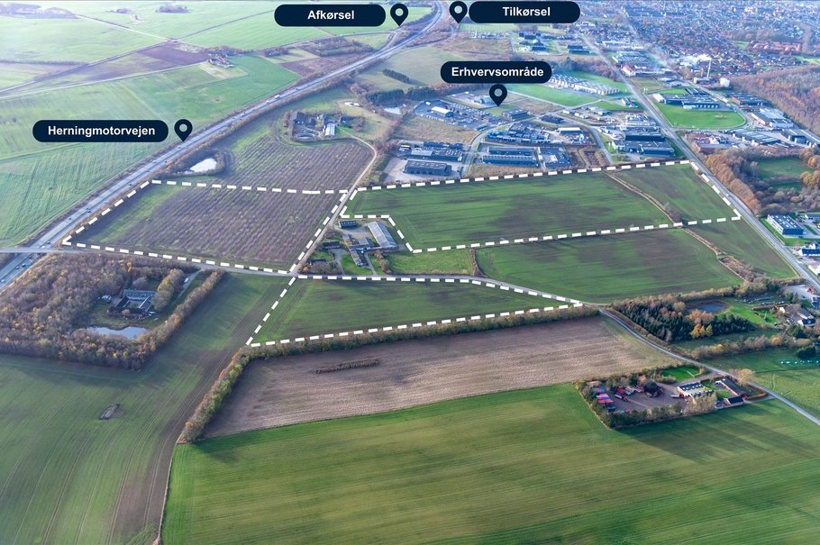 Ejendommen er beliggende i et erhvervsområde med mulighed for udvikling til let industri og håndværk, og byder på et stort potentiale for virksomheder, der ønsker en attraktiv placering tæt på både Aarhus og Skanderborg.