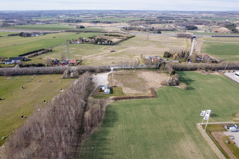 I forlængelse af denne grund er der et mellemstort allerede udbygget erhvervsområde, hvor der ligger flere større virksomheder.