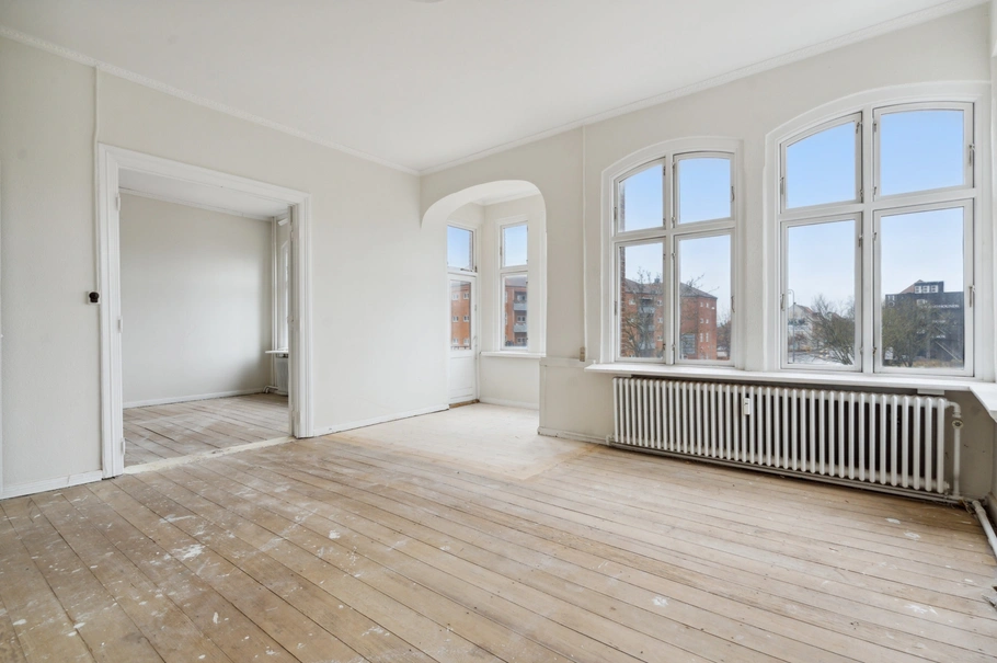 - 3. sal: To lejligheder på hhv. 80 m² og 44 m², som kræver gennemgribende renovering, men med mange muligheder.