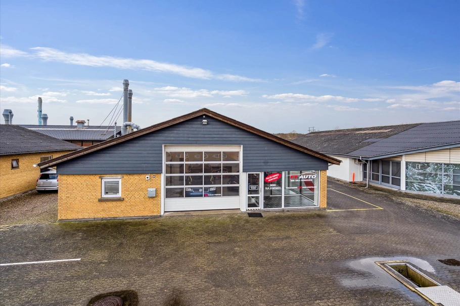 af køkken. Her finde også et mindre velkomstområde, toilet med bruser. En del af ejendommen blev indtil 2022 anvendt af bilsynsvirksomhed og kan med ganske få tiltag igen fungere som dette.