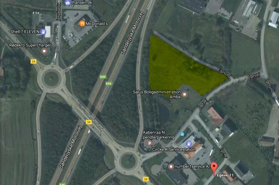 Området Egelund er særdeles velbeliggende og denne erhvervsgrund på 13.262 kvm har facademulighed direkte ud til Motorvej E45 ved til- og frakørsel 70.