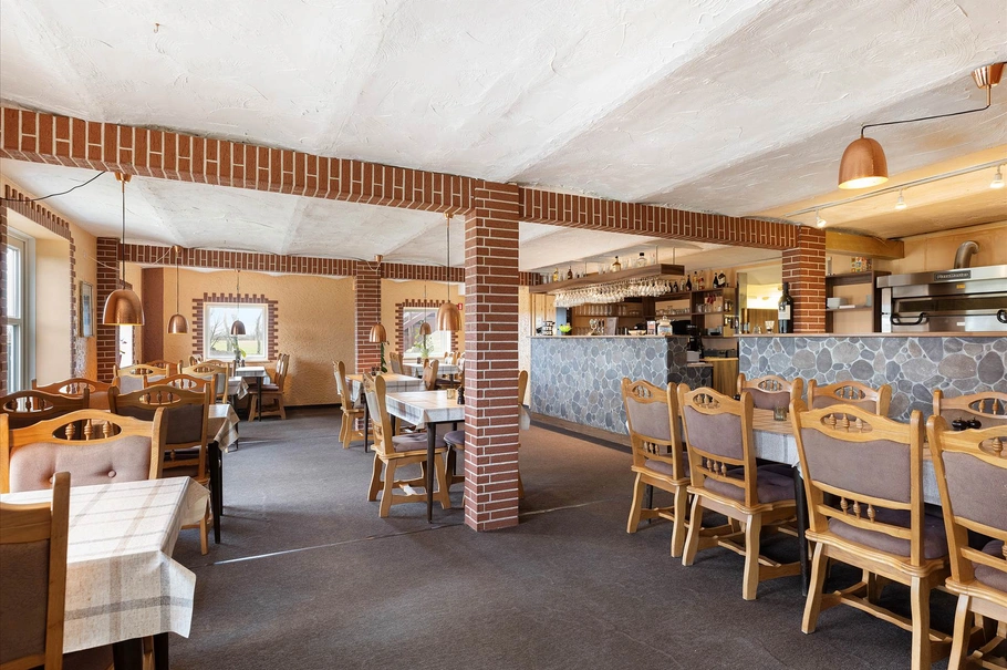 Restauranten har tilladelse og plads til 70 spisende gæster opdelt i 2 lokaler, hvoraf den ene har en meget stor og flot bar. Til restauranten hører 3 separate toiletter, hvoraf det ene er stort og handicapvenligt.