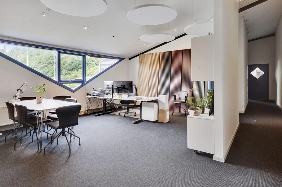 Ejendommen er oprindelig opført i 1991 på 857 m² indeholdende flot administration med flere kontorlokaler, hvor loftet følger tagkonstruktionen, kantine med smukt trægulv, toiletfaciliteter og indgangsparti med klinkegulv. Fra administrationen er der direkte forbindelse til utrolig spændende showroom med loft til kip og med store facadevinduer fra gulv til loft.