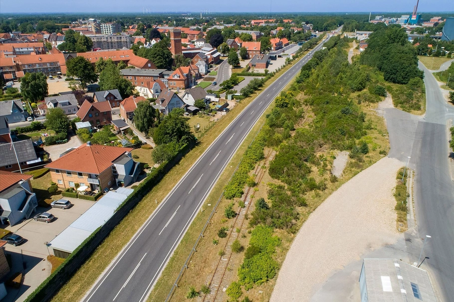 Grundene er beliggende midt i et etableret erhvervsområde tæt på byen og placeret langs med Ribe Landevej.