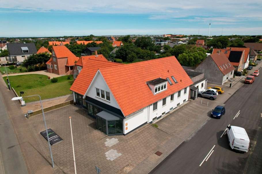 Ejendommen er beliggende på hjørnet af den trafikerede Sædding Strandvej og Borgervænget. Med denne beliggenhed er der rig mulighed for at ejendommen bliver set. Ved ejendommen er der rigtig gode parkeringsforhold.
