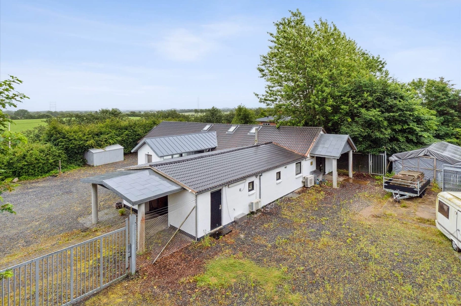 • Beliggende på en 2.807 m² grund som er delvist indhegnet med port