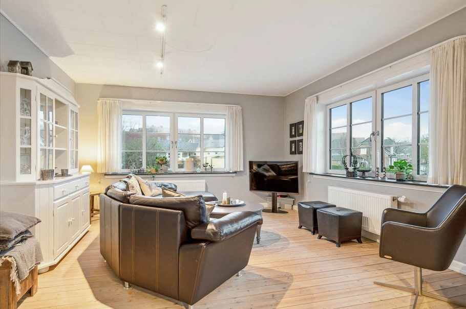 I hjertet af Sønderjylland, nærmere betegnet i Gram, ligger denne yderst velholdte rødstensejendom. Ejendommen er opført i 1953, men er løbende om- og tilbygget således, at den i dag fremstår i rigtig god stand og ikke mindst meget moderne.
