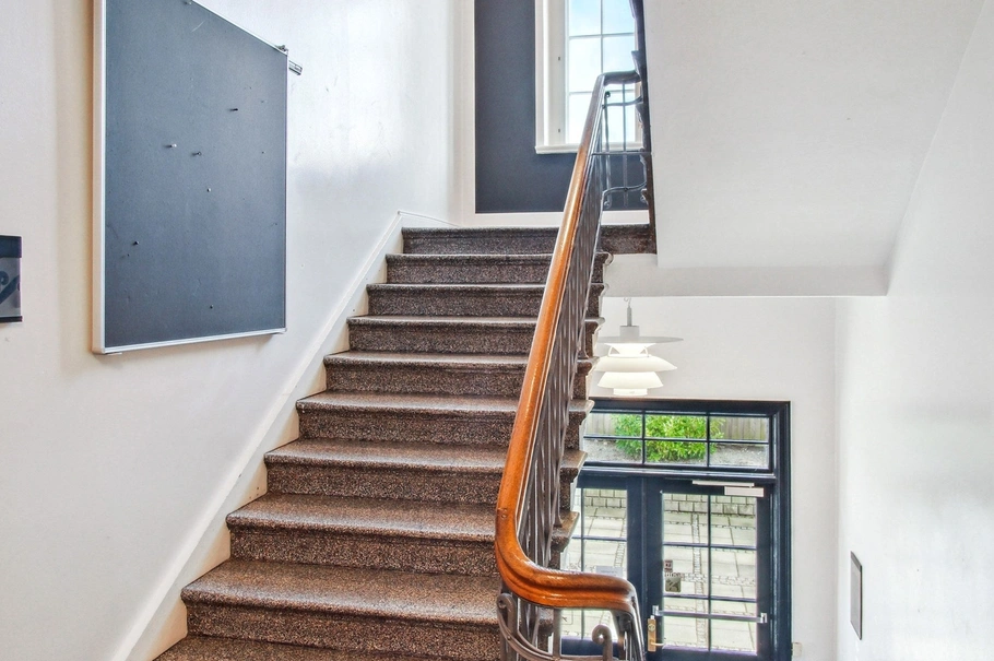 Ejendommen på Lembckesvej 2B i Haderslev er en yderst charmerende og flot ejendom, der byder på mange imponerende bevarede detaljer. Særligt bemærkelsesværdigt er den indvendige trappe, som er placeret næsten midt i bygningen, og som tilføjer en unik og karakterfuld atmosfære til ejendommen.