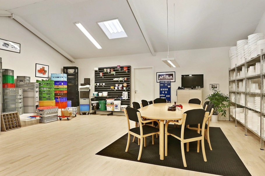 Indretningen af ejendommen er ideel til flere forskellige formål, i dag anvendes ejendommen til handelsvirksomhed med administration, mellemlager og videre-distribuering af varer. Alle former for håndværksvirksomhed eller anden virksomhed med brug for administration, udstilling, mødefaciliteter og lager, såvel opvarmet som kold.