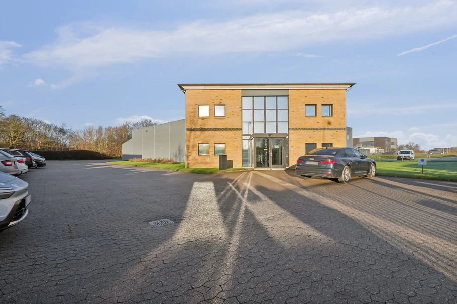 Flot og velholdt bygning, tæt på motorvejsnettet i Kolding.