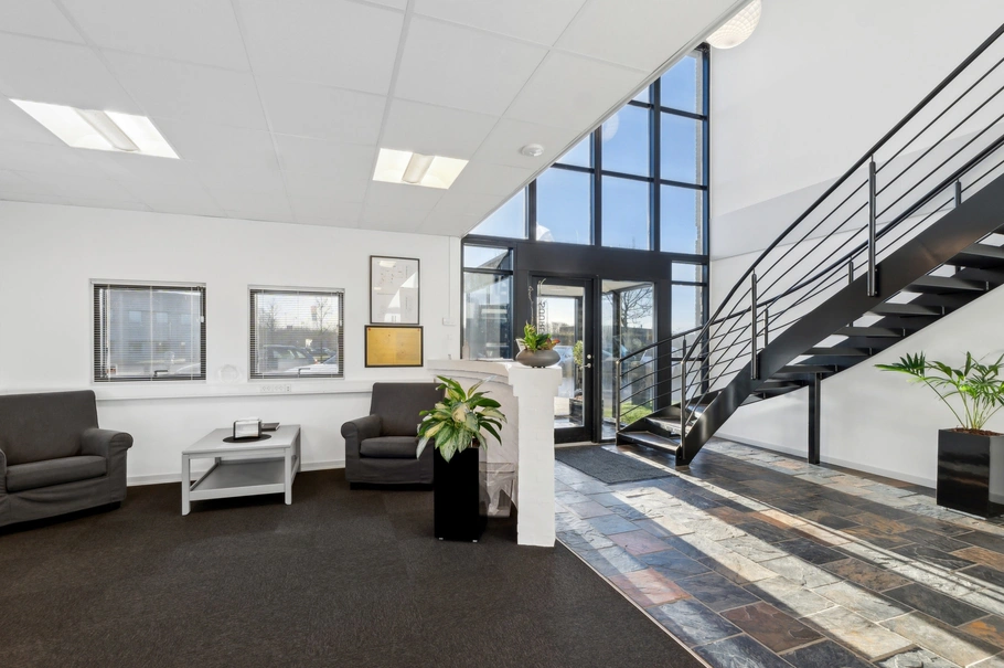 Ejendommen indeholder præsentabelt indgangsparti, som fører indtil stor foyer og derfra videre til bygningens kontorområde, som er i 2 plan. Der findes storrumskontor, enkelmandskontorer samt mødelokaler og fine kantineforhold.