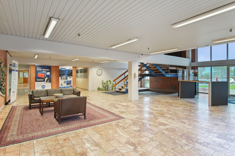 De 4.397 m² lager og produktion har en frihøjde på 5 meter med rigtigt fint lysindfald fra de mange ovenlysvinduer sat god adgang via porte.