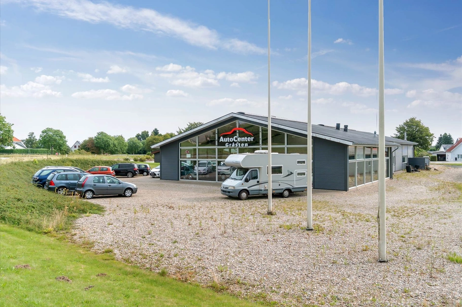 Ejendommen har et stort velindrettet og praktisk klinkebelagt værksted med flere lifte og et indskudt dæk der tilgåes via en ståltrappe, lagerlokale, omklædning med bad, kontor samt et stort præsentabelt og klinkebelagt showroom. Herudover er der flere disponible rum og en vaskehal (Vaskemaskinen er dog ikke længere i brug). Cirka halvdelen af grunden har en stenbelægning og resten er udlagt med perlegrus.