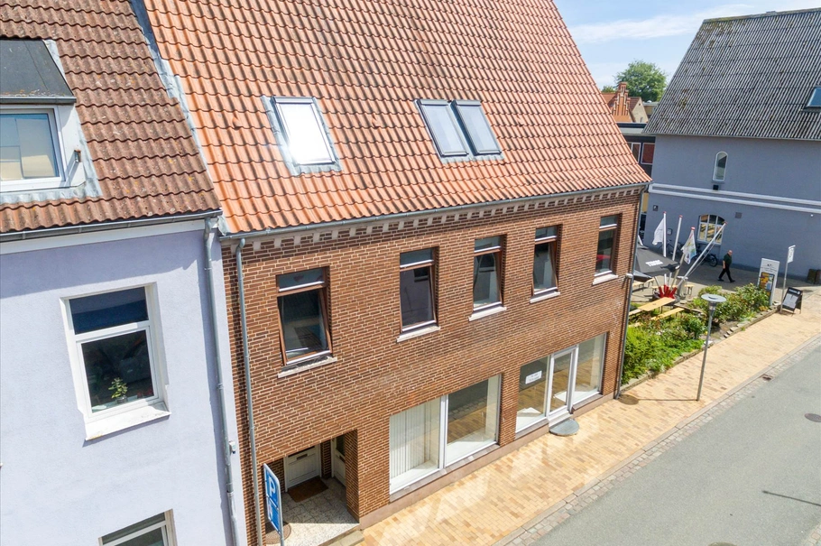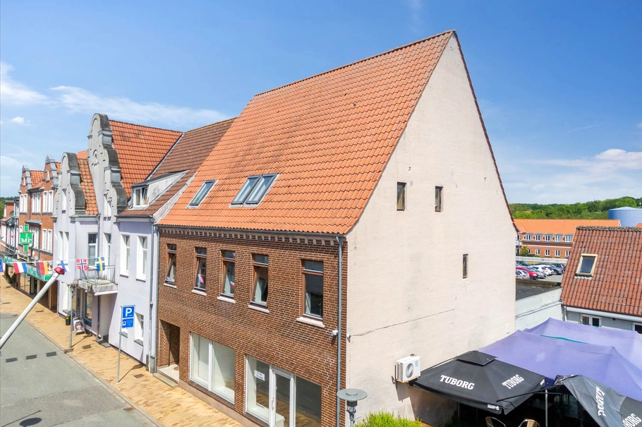 Ejendommen fremstår fortsat i flot stand med pæne facer ud mod Nygade. Indeholder pænt kontor på 100 m², som tidligere har været anvendt til ejendomsmæglerforretning. Anvendelsen er oplagt til kontor, men kunne også være til butiksformål. På 1. sal ligger en stor lejlighed på 110 m². Lejligheden bruges i dag som ferielejlighed og udlejes på dags- og ugebasis. Dette sikrer ejeren en rigtig god lejeindtægt, som oplyses til køber på forespørgsel. På 2. sal er der ligeledes en lejlighed på knap 70 m². Denne indeholder badeværelse, stue samt flere værelser. Denne skal enten integreres i lejligheden på 1. sal eller laves til en særskilt lejlighed før den kan bidrag med en indtægt til ejendommen. Dette er dog et overskueligt projekt. Alternativt kan lejligheden(erne) anvendes som ny ejers bolig eller blot udlejes på almindelig lejekontrakt.