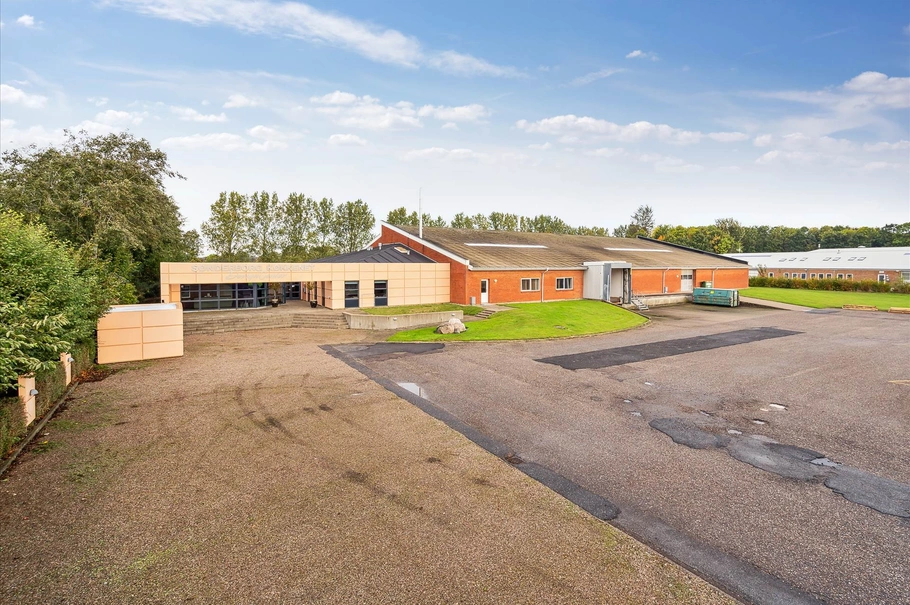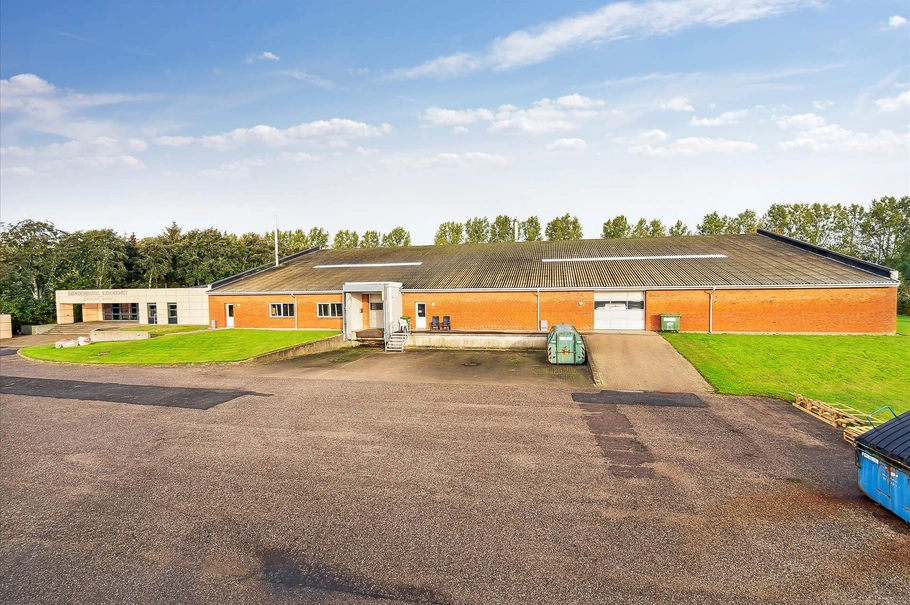 Bygningen er på i alt 1.986 m² og består af to isolerede lager- eller produktionshaller samt et tilhørende kontor- og udstillingsområde. Hallerne er praktisk indrettet med både en kørselsrampe og en læsserampe, hvilket gør det nemt at håndtere vareleveringer og forsendelser. På den store grund på 6.887 m² er der desuden mulighed for udvidelse af bygningsmassen, hvis der opstår behov for ekstra plads i fremtiden.