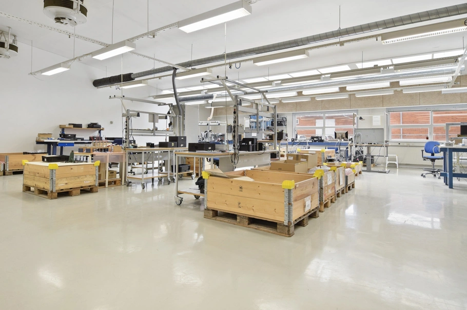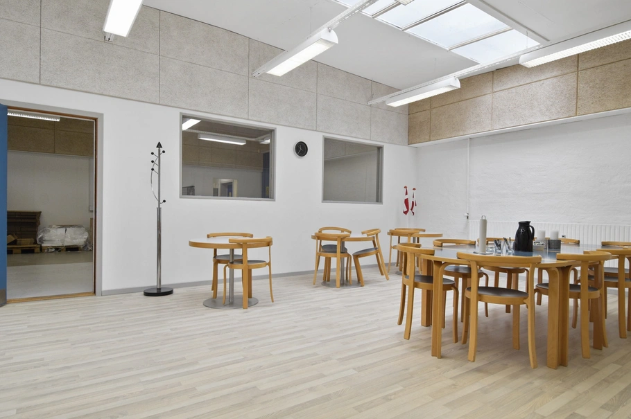 Ejendommen på i alt 2.231 m² er perfekt til en bred vifte af erhvervs-formål og indeholder værksted, lager, kontorer, showroom samt en kantine med køkken.