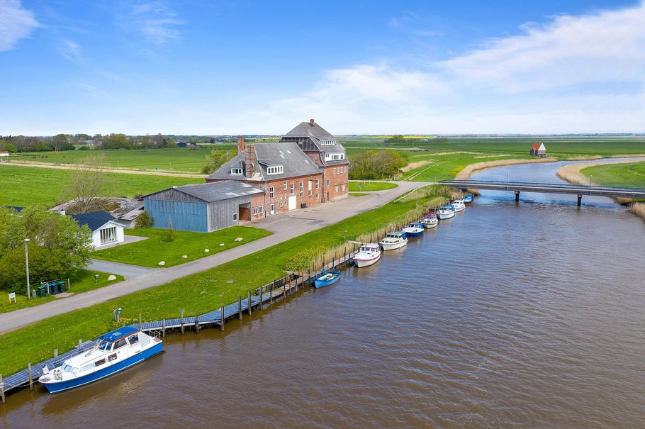 Historisk projektejendom i yderst naturskønt område, hvor ro, vand, skøn natur og Vesterhavet er lige udenfor vinduet. Vidåen strækker sig langs bygningen og munder ud i Vesterhavet kun 500 meter fra ejendommen.