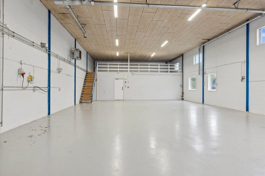 Tag din virksomhed til næste niveau med et veludstyret værksted og lagerplads. Med adgang via en høj port er det nemt at håndtere forsendelser og modtage forsyninger uden besvær. Den tilstødende garage på 65 kvadratmeter tilbyder yderligere opbevaringsmuligheder eller plads til køretøjer og udstyr.
