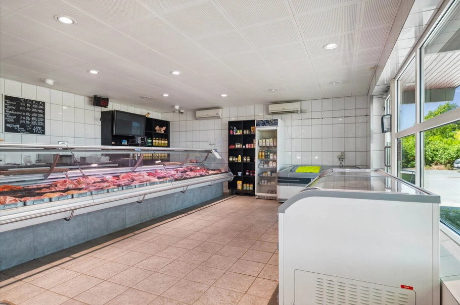 Slagterbutikken er på 218 m² og er ligeledes fra 1980. Den er klassisk indrettet med butikslokale og tilhørende køkkenfaciliteter, kølerum m.m.