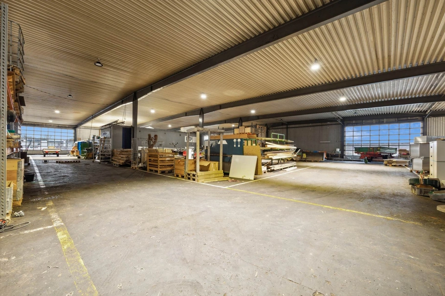 Ejendommen er 2.599 og fremstår som et stort rum indvendigt idag med meget stor frihøjde overalt på ca. 5 meter i højden. Bortset fra enkelte bærende stålprofiler midt på, er ejendommen frit til disposition indretningsmæssigt.