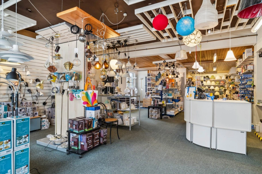 Ejendommen indeholder i stueplan bl.a. nydeligt butikslokale, samt større kontor med 2-3 arbejdspladser, pænt køkken og diverse lagerplads/værkstedsareal. Der er desuden udgang til gårdområdet bag ejendommen.