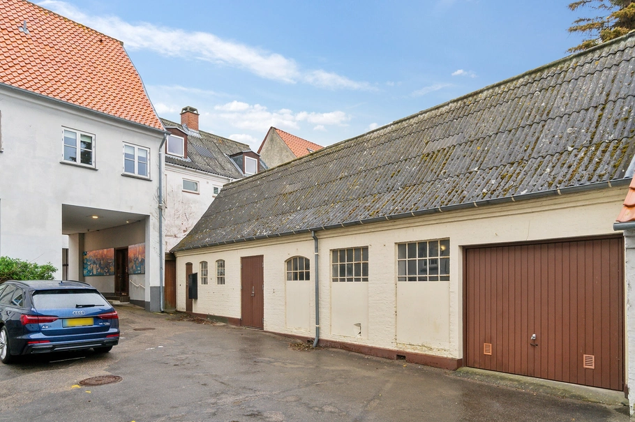 Ejendommens baghus er med diverse lagerlokaler, "bryggers", samt garage, og uudnyttet loftsrum. Adgang til bygningen sker via naboejendommens baggård/parkeringsplads.