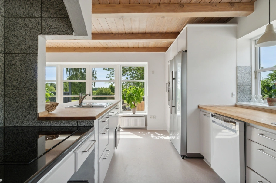 Her er fornemmelsen af at bo på landet, mens både indkøb, skole og daginstitutioner ligger omkring 500 meter fra døren, mens skov og strand er små tre kilometer væk. Derudover tilgås motorvejen på et kort øjeblik.