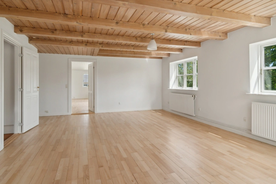 Efter en brand i 70'erne er længen med lejlighed og værksted opført igen. Lejligheden som deler gårdsplads med stuehuset, er nyistandsat på 99 m² og står flot med to lyse værelser, et badeværelse med brus samt et åbent køkken-alrum.