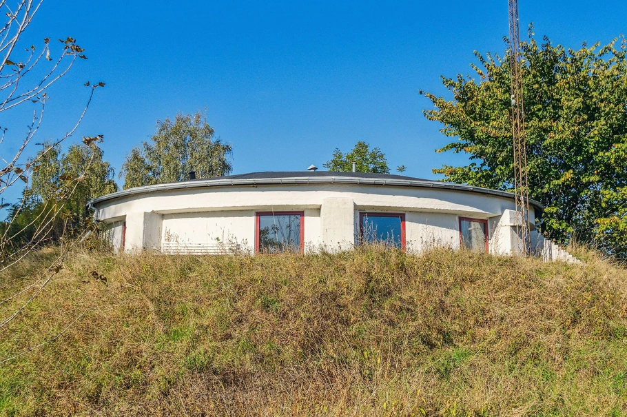 Den runde hovedbygning har stueetage der er delvis nedgravet, og som kan anvendes til værksted, lager, garage m.v., og på bygningens 1. sal er der indrettet stort møderum/gildesal, kontor, køkken, omklædning m.v.