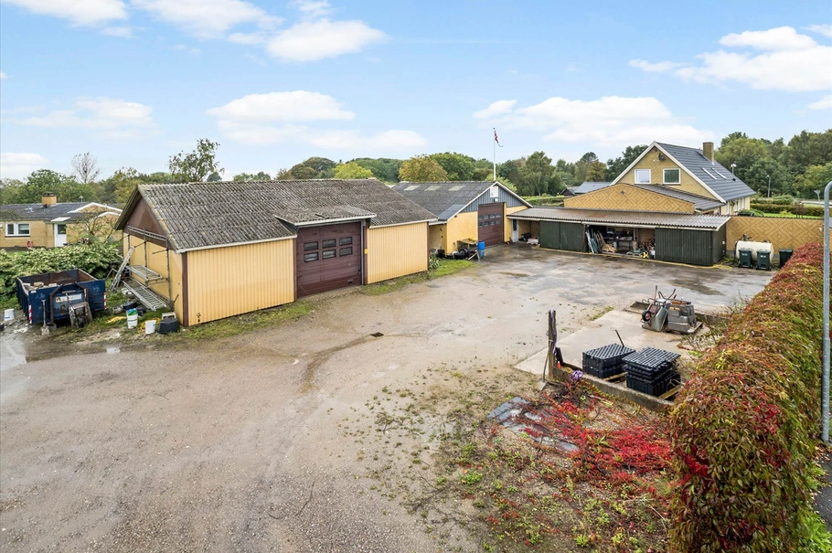 Erhvervsarealet på 188 m² er bestående af to bygninger. Den ene bygning med et areal på 80 m² og den anden på 108 m². Bygningerne er opført i hhv.1962 og 1997. Bygge bygninger er udstyret med en stor port. Bygningerne kan anvendelse til lager såvel som værksted. Bygning 1 på 80 m² fra 1962 er fuldmuret med 20 cm. Gasbeton. Bygning 2 fra 1997 på 108 m² er en stålhal uden asbesttag. En køber kan eventuelt selv etablere sig med kontorer og en luft-til-luft varmepumpe om nødvendigt. Foruden erhvervsarealet på 188 m² i de to haller er der et anvendeligt skur / overdækket areal velegnet til oplag.