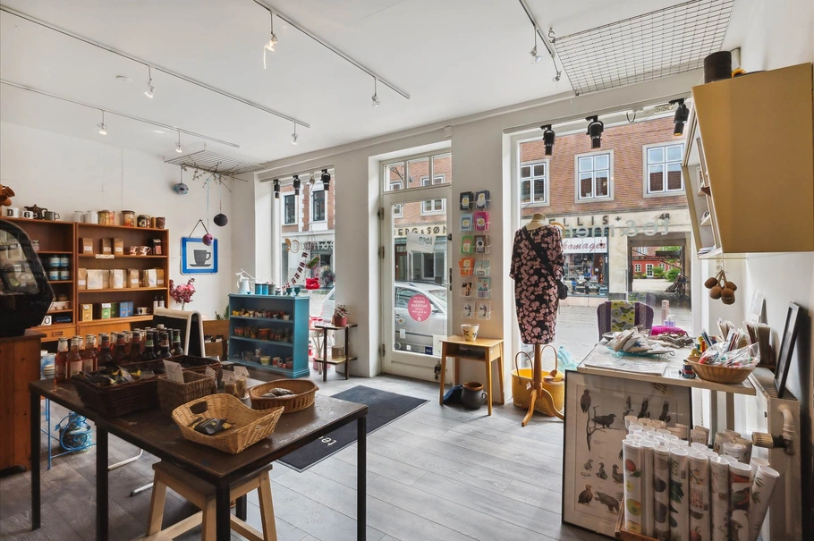 Butikslokalet er indrettet med omtanke for at skabe en indbydende atmosfære for kunderne. Der er gode muligheder for at præsentere dine produkter på en attraktiv måde samt plads til et kontor og the-køkken, der gør det nemt både at betjene kunderne og drive forretning på daglig basis. På 1. salen af ejendommen finder du mulighed for ekstra lagerplads, så du altid har plads nok til opbevaring og organisering af dine varer. Dette gør det let for dig at holde orden i butikken og sikre optimal drift.