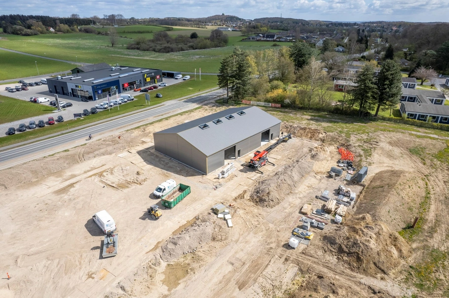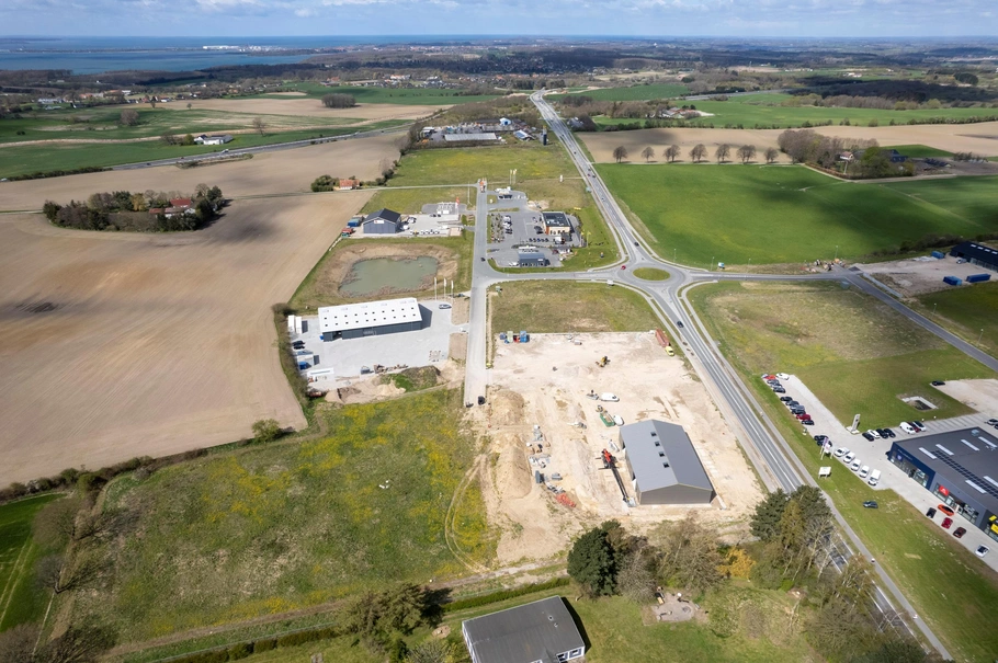 Ejendommen her består af en stor grund, hvor der er bygget en helt ny lagerhal på ca. 600 m², hvilket betyder at der er masser af plads til at bygge yderligere hvis det ønskes, så man kan udnytte den store synlighed.