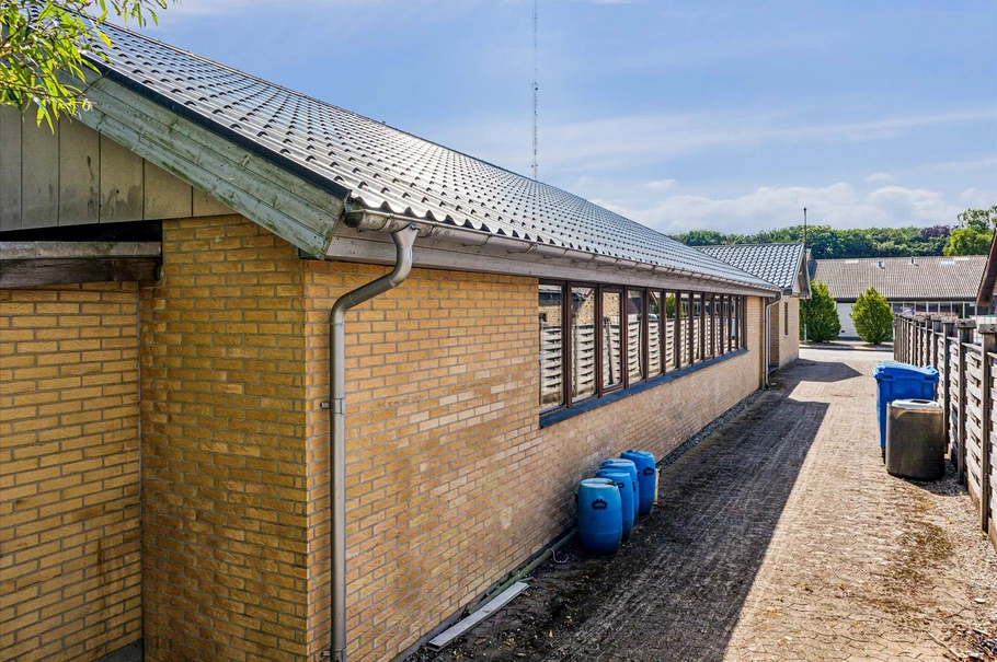 Her findes et stort lokale, der er velegnet til både kontor og lager, og som tilbyder fleksible anvendelsesmuligheder, så det kan tilpasses forskellige erhvervsbehov. Erhvervsdelen indeholder også et toilet samt en garage/værksted, hvilket gør denne sektion bredt anvendelig til både administrative og håndværksmæssige opgaver.