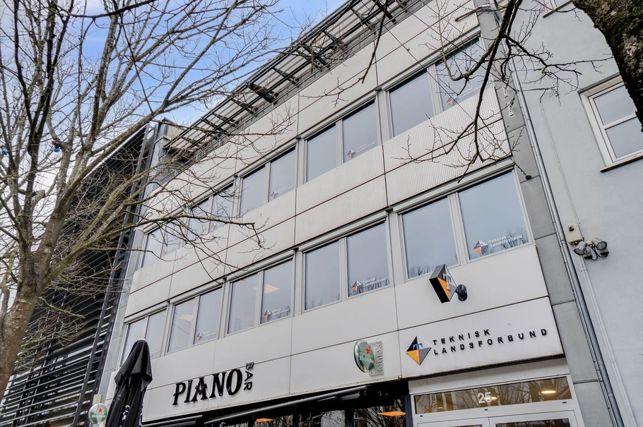 Kontorlokalerne, der overtages som beset, er store og lyse og med et præsentabelt indgangsparti med trapper og elevator fra kælder til 3. sal.