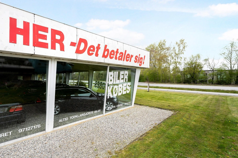Udstilling og autoværksted er forbundet via kontor og personalefaciliteter.