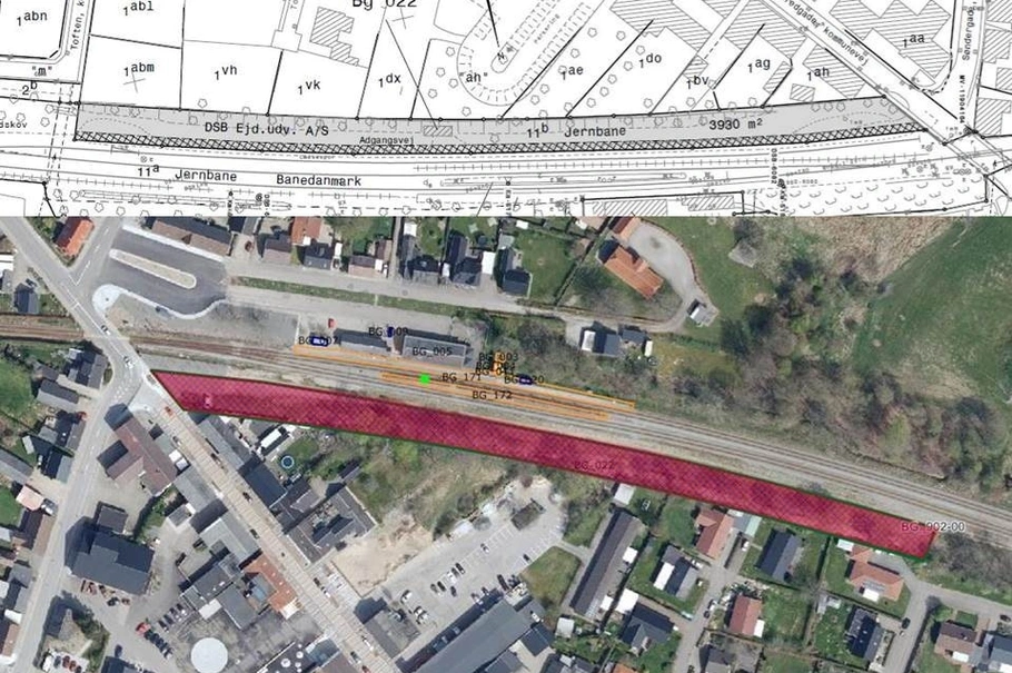 Ubebygget areal beliggende ved jernbanen midt i Bording stationsby. Arealet er aflangt og beliggende langs jernbanen for regionaltoget og udgør ca. 3.930 kvm.