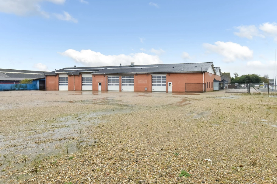 Den første ejendom er samlet set 2.084 m², hvoraf 1.160 m² består af værksted- og lagerfaciliteter. Disse faciliteter indeholder 8 porte, en lift samt en smøregrav til lastbiler. Der er 417 m² kontor- og medarbejderområder, hvoraf halvdelen indvendigt kunne bruge et kosmetisk løft. Uanset dette, er der rigelig plads til at huse et større antal ansatte. Derudover er der et depot på første sal på 430 m², hvilket giver mulighed for arkiv eller lignende. I forbindelse med værkstedet finder du et rum på 77 m² til en kompressor samt et rum til en olieudskiller.