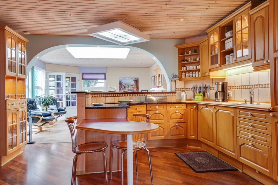Ejendommen er særdeles velegnet for den pladskrævende familie, idet boligen er på 228m2, heraf 120m2 på 1. sal. I stueplan er det flot køkken alrum med pyramideformet ovenlysvindue, der giver rummet et flot lys, stue, spisestue, kontor samt badeværelse. 1.sal er indrettet med: 4 soveværelser, heraf et med fransk altan, hyggelig stue med loft i kip og med fransk altan - samt 2 stuer/fordelingsgange. Der er endvidere et badeværelse på 1. sal.
