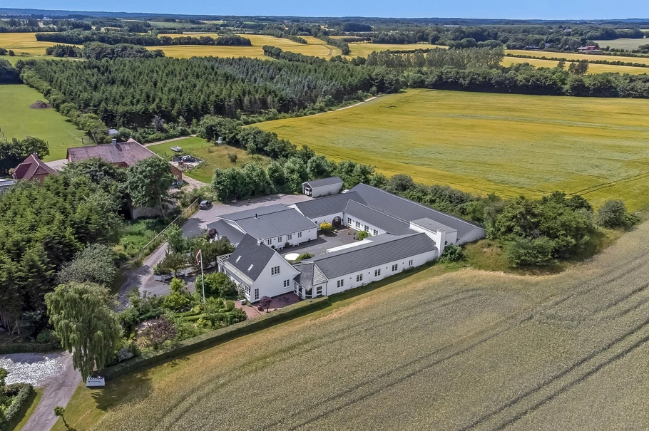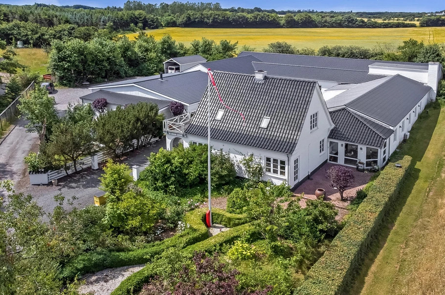 Den private bolig er opført i to plan med en førstesal med værelser, badeværelse og en skøn terrasse med udsigt ud over landskabet og markerne. I stueplan finder man et flot spisekøkken og en dejlig rummelig og lys stue med brændeovn.