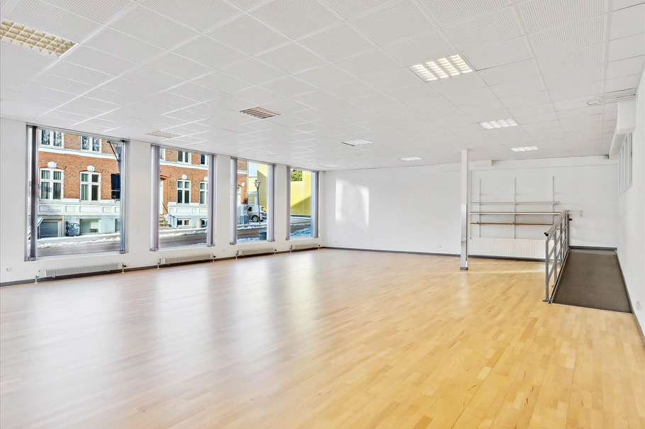 • Præsentabelt og højloftet facade-lokale velegnet til detailbutik, træning, mv.