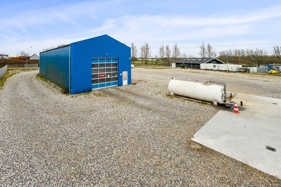 Værksteds-/ lagereejendom med tilhørende stort befæstet, indhegnet grundareal samt 750 Ampere beliggende i nyere erhvervsområde i Viborgs vestlige del - nær det overordnede vejnet.